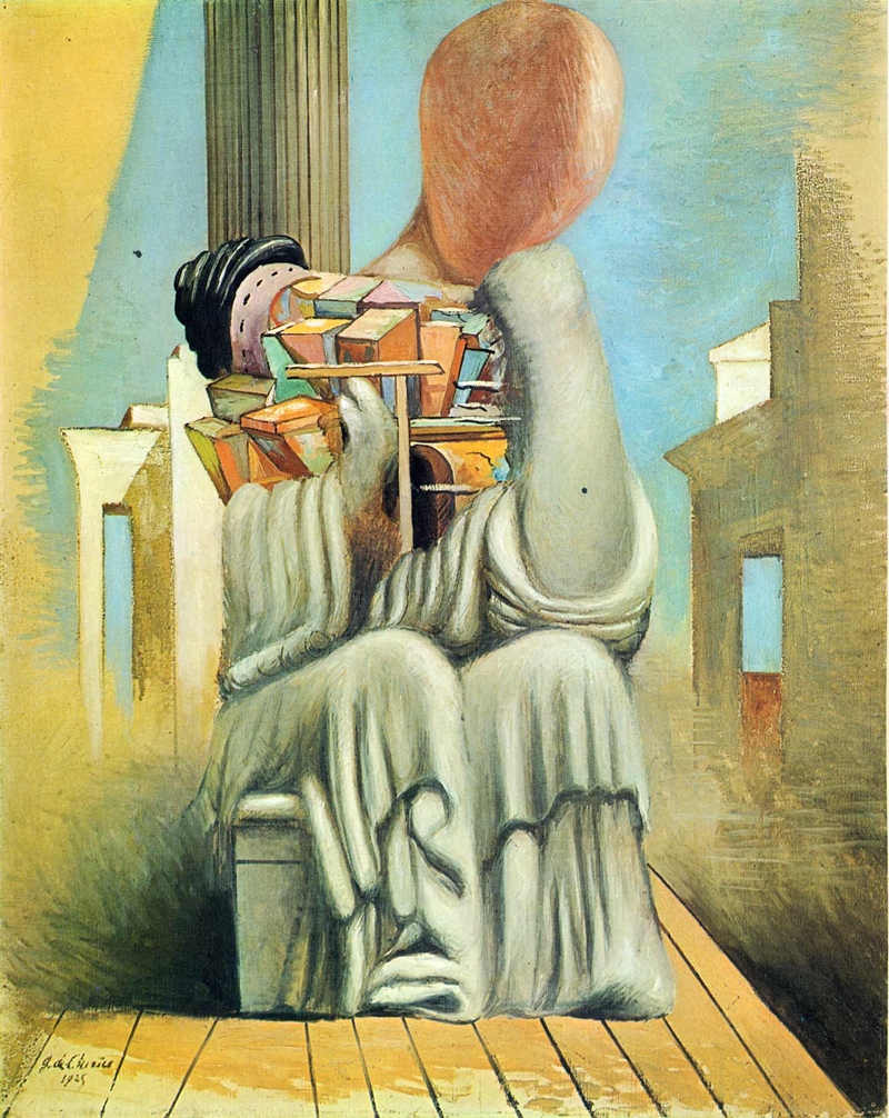 • "Se durante la visita ad un museo di scultura antica entriamo in una sala deserta, ci capita spesso che le statue ci appaiono sotto un aspetto nuovo. La statua eretta su di un palazzo o un tempio, ovvero al centro di un giardino o di una pubblica piazza, ci si presenta sotto diversi aspetti metafisici".